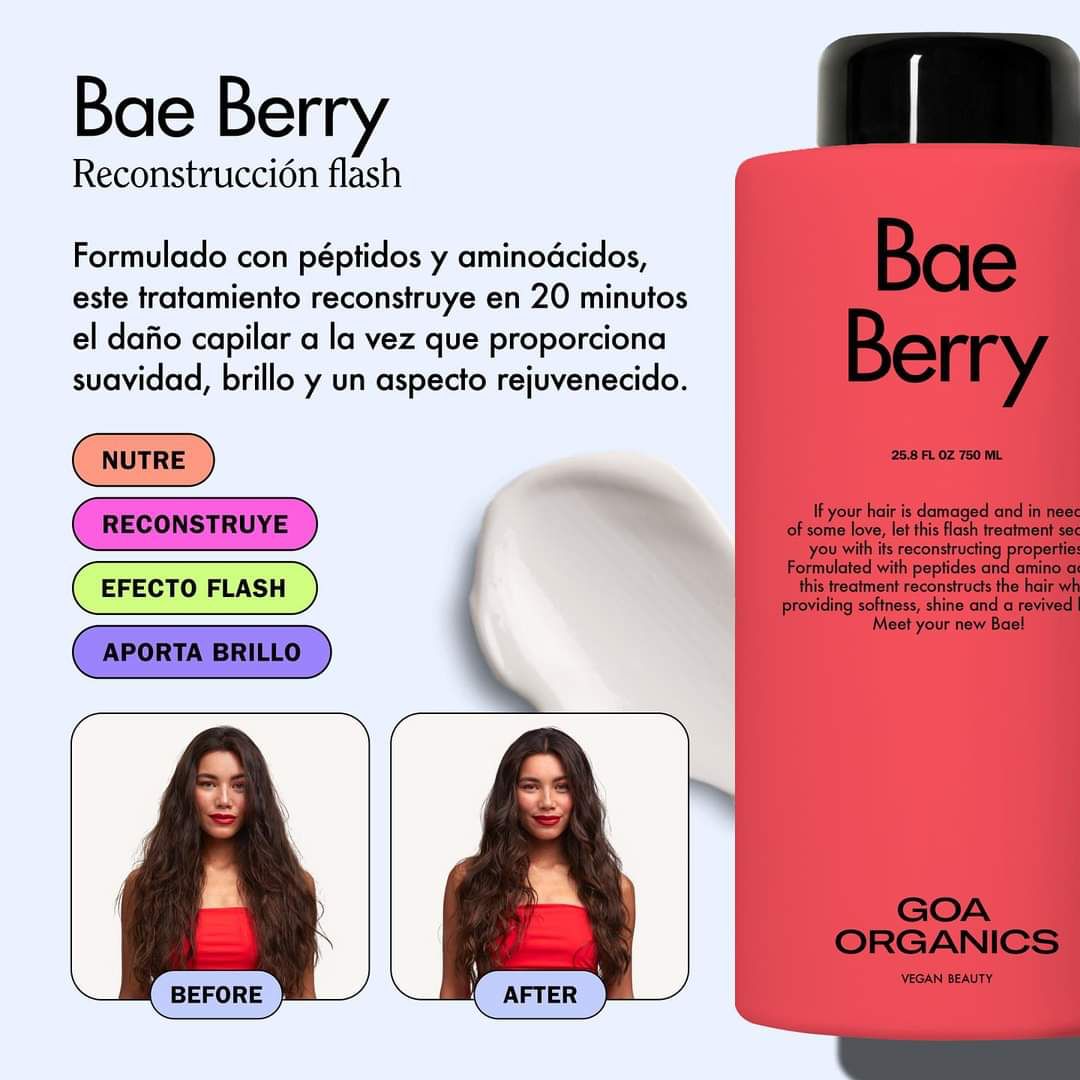 La solución exprés para el daño capilar. Bae Berry es un tratamiento de uso exclusivo profesional con una acción rápida de reconstrucción que reduce el daño producido en la fibra capilar por procesos de decoloración, falta de cuidado, exceso de planchas o paso del tiempo.